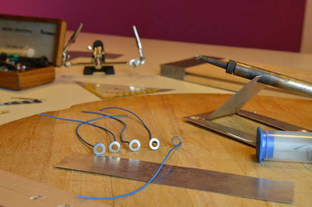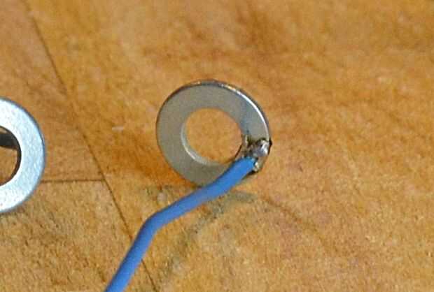Las arandelas se conectarán a los pines de recepción en el Arduino. Por lo tanto tienes que soldar los cables a las arandelas. Cables sin blindaje trabajan para mí. En diferentes configuraciones blindadas los podrían ser mejores.