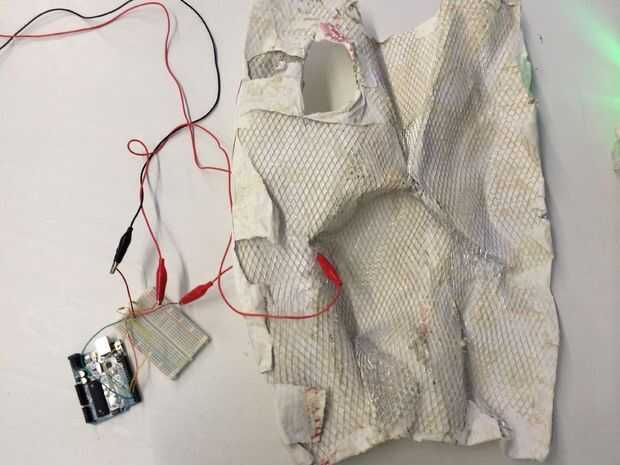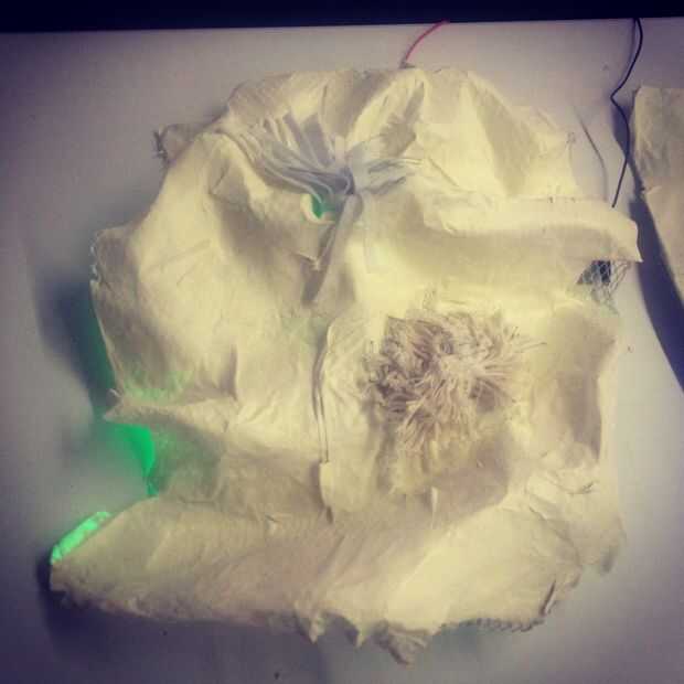 Queríamos crear algo táctil, interesante y extraño para el usuario al tacto por lo que hemos implementado algunas técnicas de fabricación. Realizamos suaves pompones de circuito.
