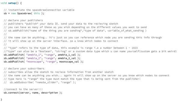 Mientras que hemos proporcionado el código de cómo conectar esto a Spacebrew consulte las imágenes para una breve descripción de lo que cada uno de los do de funciones!