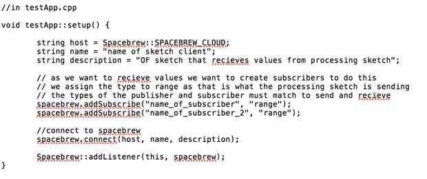 Estamos estableciendo de ser puramente un bosquejo de suscriptor de SpaceBrew, por lo tanto, sólo estará recibiendo los datos de Spacebrew.