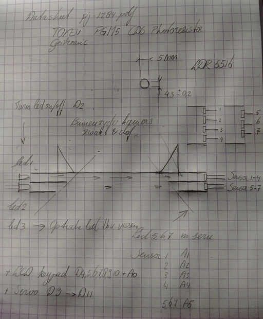 Los dibujos están en holandés, mis excusas. Por favor verificar los planos antes de iniciar su construcción. También verificar las dimensiones de sus componentes (el servo, Arduino, LCD).
