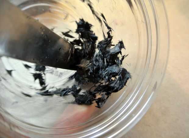 1) mezcla una pequeña cucharada picada de fibra de carbono con un chorrito de alcohol para frotar. (lo suficiente como para conseguir mojado)