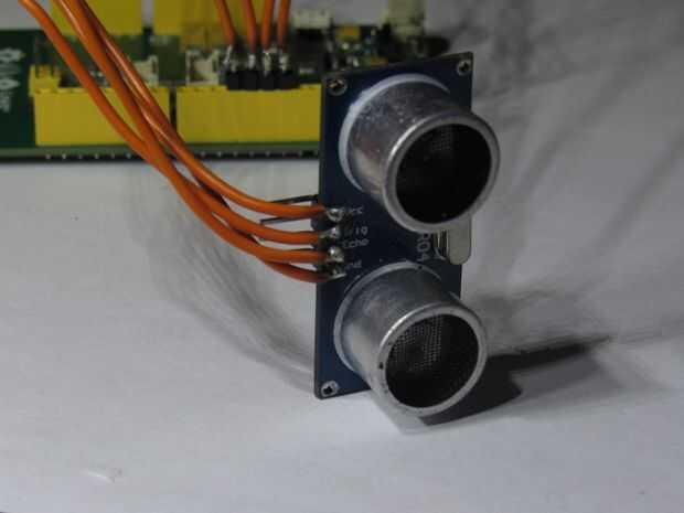 El sensor ultrasónico del alambre "-", de a GND, VCC de 5V, disparo al pin 12 y echo al pin 11.
