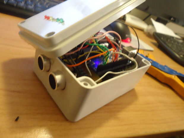 Hola todos, coche de mi papá no tiene sensor de aparcamiento. Así que me decido a hacerlo y dejar la mano señalando a mi padre cada vez que iba al estacionamiento. El dispositivo consta de dos partes:Tx - módulo: es el sensor con un módulo de comunic