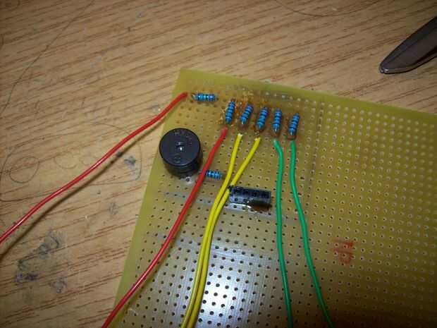 Luego tienes que cortar las tapas que no sean necesarias y soldar todos los cables del puente a los cables de cada resistencias, zumbador, gatillo (del sensor), eco y Vcc (también del sensor).