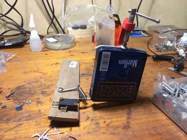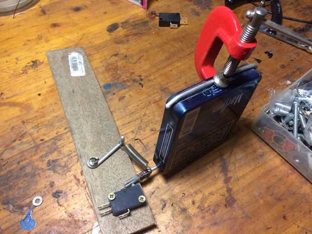Empecé a enroscar la palanca de ajuste en la madera con un pequeño tornillo y dejando espacio por debajo para switch montar