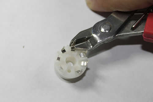 A continuación, doblar todas las patas hacia el centro. Para tener una idea de cómo ahora en, mire la huella en el tablero. Las piernas todo se va en los 6 orificios en un círculo en el espacio del sensor.