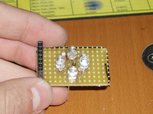 El LDR con la resistencia de 10 k y los pernos como el esquema de la soldadura.