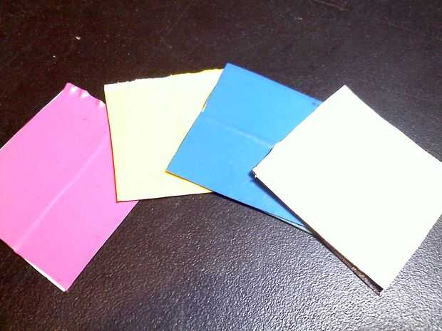 H. corte varios cuadrados de ficha lo suficientemente grande como para cubrir la caja. Cubrir cada lado con un solo color de cinta aislante.
