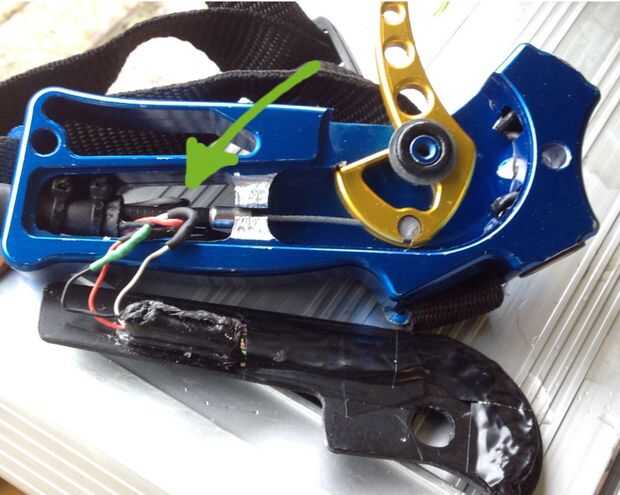 3 soldar los enlaces, resistencias y los cables según la parte del acelerador de la figura anexa. Mantenga los resistores apretados en la parte trasera del chip y asegúrese de que no hay shorts. Todo tiene que encajar en esa ranura al lado de donde entra el cable del acelerador como marcada por la flecha verde.