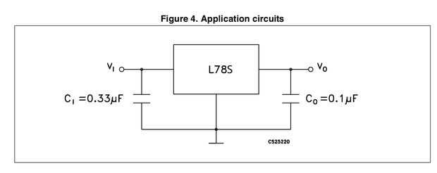 porque tengo otras cosas a la energía, pero si todos están alimentando esta pantalla, luego la versión de 1A va a estar bien. Siga el diagrama para el regulador de voltaje, capacitores de grano tantallum será mejores para esta aplicación.