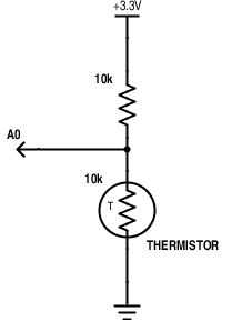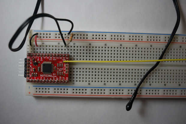 El sensor que estamos utilizando es un 10kOhm epóxido sellado termistor de Adafruit, que tienen excelente documentación. El código que estoy utilizando es una versión ligeramente modificada de los suyos. No tiene ningún sentido en volver a inventar la rueda, así que por favor, lea su documentación además de este tutorial para obtener más información acerca de este sensor.