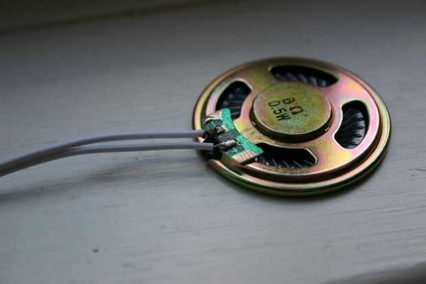 Este cable incluido con el módulo de sonido debe soldarse al altavoz incluido. El altavoz no proporciona mucho volumen, pero se pueden escuchar los resultados.