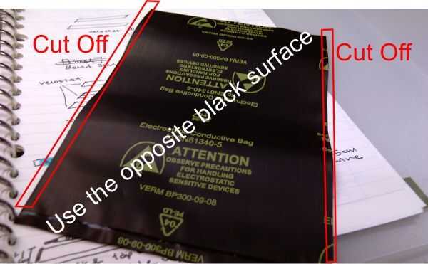 Tip: esto realmente ayuda a tener una plantilla para cortar rectángulos consistente para las bolsas antis estática.