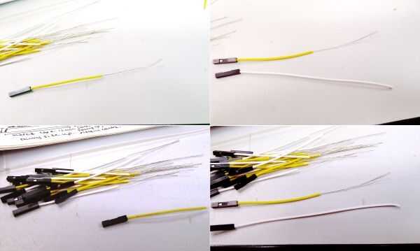 ADVERTENCIA: No soldar / lata/flujo a los cables. Esto afecta el valor de resistencia más adelante. Dejarlo en su * natural * Estado.