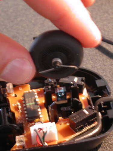 muela mouse 1, 2, tubo del encogimiento del calor 3, repuesio de la pluma de bola usado 4, circuito de comparador lm358 5, la hoja de acrílico 6, sensor de infrarrojos ranura