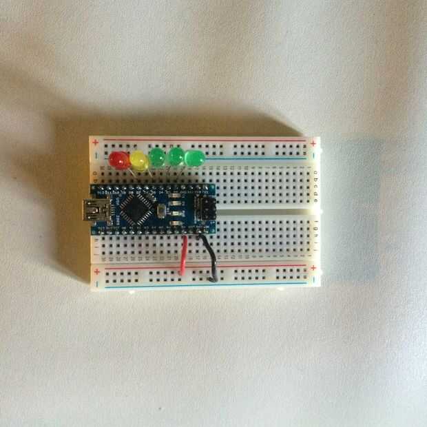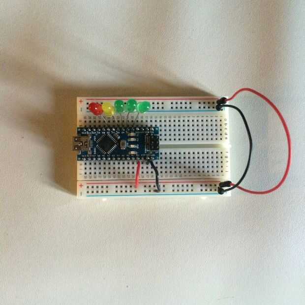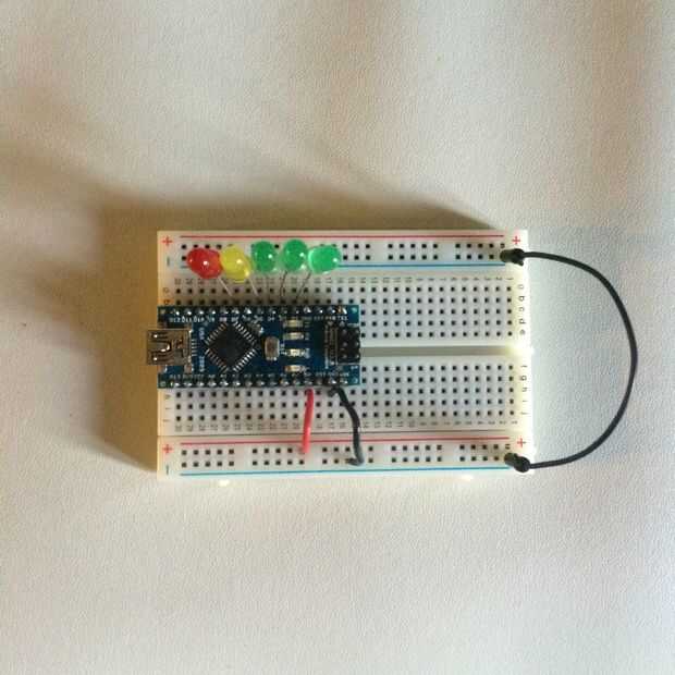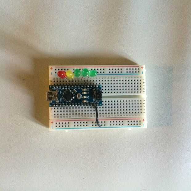 De arduino Pin de 5v conectamos un puente corto al carril rojo sobre la protoboard.