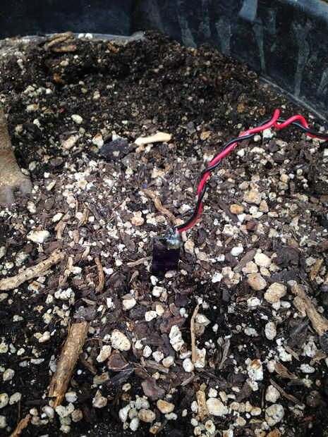 • Coloque el sensor en una taza de suelo seco. Añadir una pequeña cantidad de agua y medir los cambios en la salida del sensor en el tiempo (esperar al menos 5-10 minutos). Repita este varias veces para obtener una mejor comprensión de la lectura y mejorar el software y hardware según sea necesario.