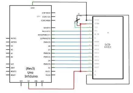 4. conexiones de hardware de pantalla LCD con Arduino Uno