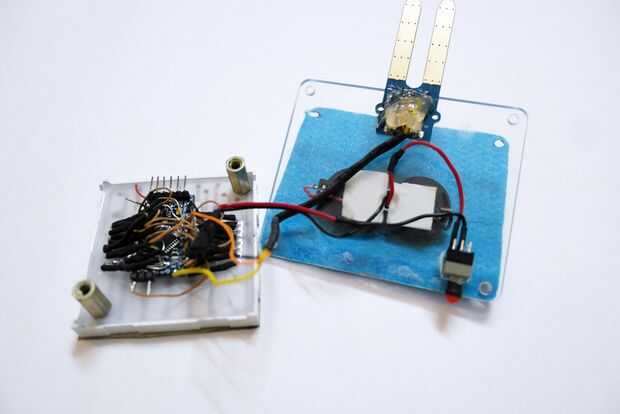 Ahora conectados a la matriz de LED y sensor de agua al mismo Arduino pro mini, añadido un interruptor para encendido y apagado y ocupa como en fotos.