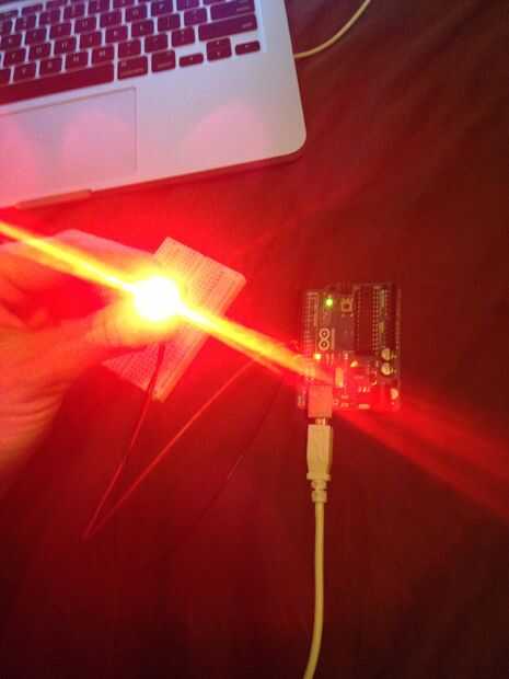 Es muy importante la elección de LED, desea obtener la más brillante que puede encontrar. Inicialmente sólo agarré al super brillantes los de Sparkfun, pero negleted para notar que sólo sean 8000 millicandela. No era visible más allá de 150 yardas, incluso a través de la ampliación. Así que buscó alrededor y encontré estos 5mm 5V Super Bright LEDs rojo de hitechledworld en ebay. Son 20, 000mcd que funcionó muy bien hasta 575 yardas (más lejos he podido probar). Espero poder probar para saber lo que la distancia máxima es de pronto.