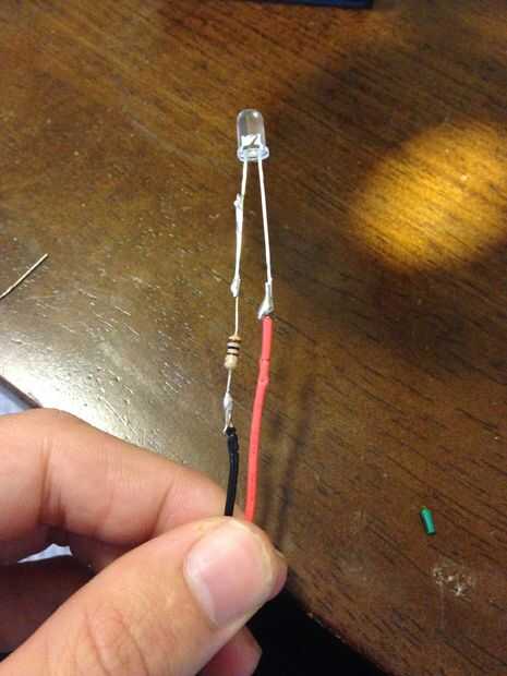 Adafruit tiene un tutorial mejor que le podría hacer acerca de los conceptos básicos de LED aquí. Si quieres aprender exactamente lo que está pasando, tomar 30 minutos y echa un vistazo. Si desea saltar justo al punto de soldadura hasta una resistencia de 100 ohm en el lado negativo de lo LED (la pierna más corta) y otro cable en el lado positivo. Finalmente estos se soldar en el Arduino. Me hubiera gustado usar algunos del encogimiento del calor para aislar los cables, pero no tengo una pistola de calor. En su lugar hacer los pobres mans forma, doblar el alambre expuesto algunos cinta aislante, y recortar corto. Funciona bastante bien.