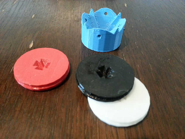 Impresión dos tapones grandes y cuatro de los pequeños. Idealmente, cada tapón debe tener un color diferente. Como alternativa puede utilizar un solo color y añadir símbolos o letras "grabado" a la superficie que va a terminar en la cara del cubo.