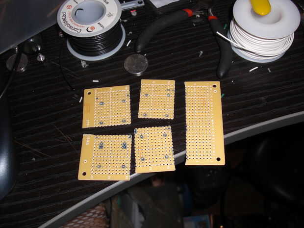 Después de hacer el diseño, marcar y romper el tablero. Anoto un par de veces en cada lado con un cuchillo de la caja y descanso sobre la esquina de una mesa. En estas fotos estoy haciendo dos sensores, por lo que he hecho cuatro placas, una tapa y un fondo para cada uno. El poco de Junta extra era útil en el proyecto.