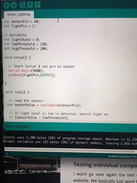 void setup() {/ / Inicio serie y set pin salida Serial.begin(9600); pinMode(lightPin,OUTPUT);}