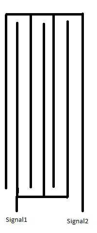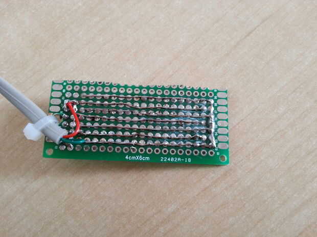 El sensor sí mismo es un conjunto (mal soldado) de 2 rastrillos con los dedos paralelos (ver foto y dibujo).