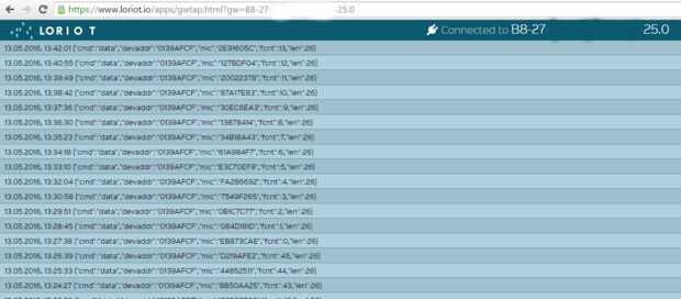Si utilizas 'loriot' puede ver paquetes va a su servidor en la página: https://www.loriot.io/apps/gwtap.html?gw=B8-27-EB-... (poner aquí la MAC de tu GW)