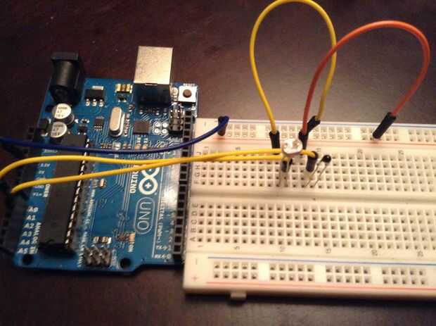 Conecte la LDR al pin analógico 0 en el arduino y el termistor a pin analógico 1 de arduino.
