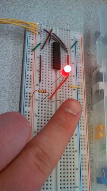 - Prueba que el código- Encender y apagar las luces o la resistencia de la foto con el dedo para encender y apagar el LED de la cubierta.