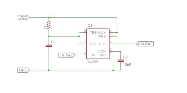 Esta configuración de chip 555 se llama configuracion monoestable. Pero no se asusten! Lo único quiere decir esto es cuando un pin de señal se pone en 0 voltios el chip 555 se enciende por un tiempo determinado ustedes elijan.