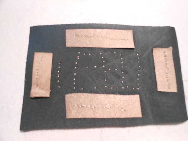 Después de los cuatro fuera de los sensores han sido cosidos, el interior debe rellenarse utilizando la misma técnica. Comenzar alrededor de una pulgada de distancia y asegúrese de no coser a la tela conductora. Coser aproximadamente tres líneas paralelas de puntadas para llenar en el centro del sensor. Recuerde que si un hilo en el centro es tocar uno de los hilos exteriores que está enganchada a la tela conductora, la luz se encenderá. El más grueso haces el interior, más probable es que esta conexión va a pasar sin ti significado para que esto ocurra.