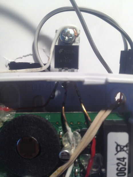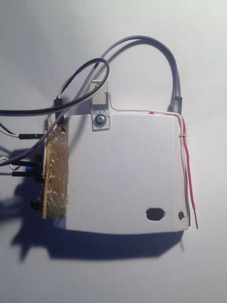 Una vez que han construido el transmisor que podemos conseguir poner todo junto. Me caliente había pegado justo al lado del sensor de movimiento. FYI el sensor de movimiento sólo dibuja 20 miliamps que significa bajo consumo de energía!
