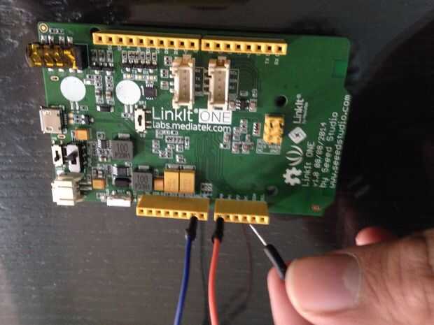 Conectar el sensor a un protoboard y luego conecte el pin GND al pin GND de tu linkit, VCC de 5Vy datos pin a pin A0 .