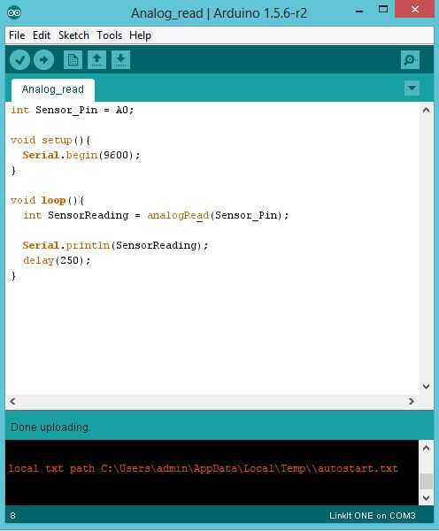 Sólo estamos leyendo el valor de venir a pin A0, si el sensor devuelve el movimiento, estamos enviando mensaje "Detecta movimiento" a la computadora.