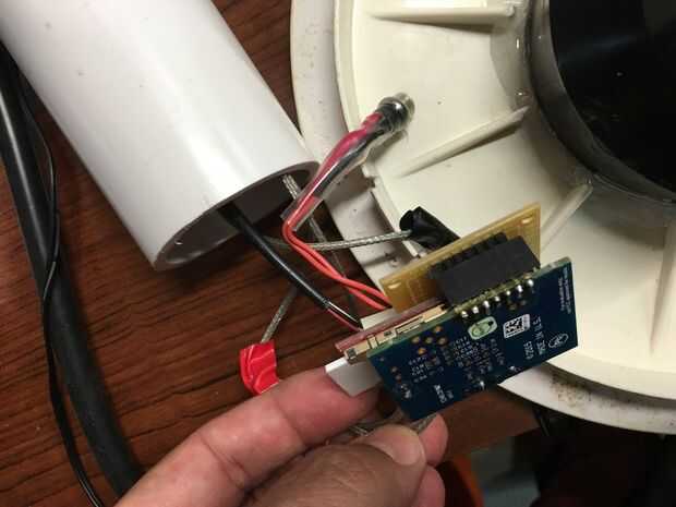 Ahora estás listo para ésos electrónica en la carcasa de la sonda y botón encima. Fije la batería 9V, sensor cables y puntas de sonda de temperatura. Con cuidado poner placas de circuito impreso en el adaptador de PVC e intentar vestir los cables para no quedar apretados. Por resbalones encajar el tubo de PVC en el adaptador y usar algunos Tommy Tape para hacer una unión hermética entre los dos. Usted está listo para entrar en la piscina!