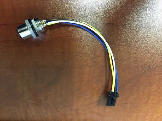 Tenemos un arnés simple de 4 conductores de alambre para construir aquí que va desde el conector de montaje en panel para el PCB Conector header. Para este paso, vas a necesitar el cable AWG 22 y PCB Conector header y terminales, además de los elementos de los pasos anteriores. Para herramientas, necesitarás un soldador, Desforrador/cortador de alambre y herramienta de la encrespadura.