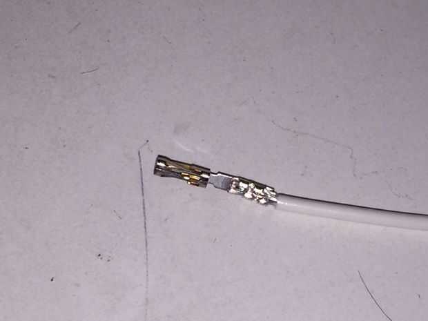 - Inserte los terminales en el conector. Nota el diente en el terminal viene a través del agujero pequeño en el conector. Debe haber un leve "click" cuando se introduce el terminal. Inserte los terminales derecho en las posiciones de derecha! Ver notas sobre pin contando a continuación.- Potencia de conector pin 1 = 3c3 en e-imp