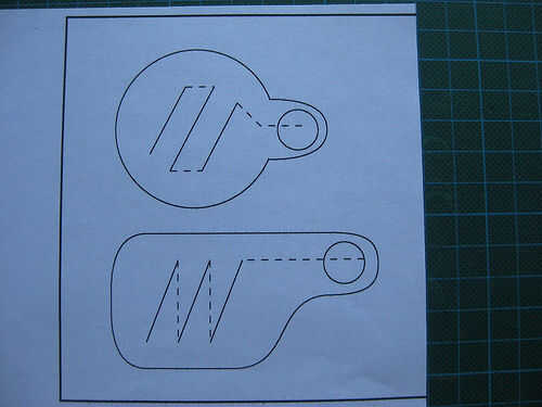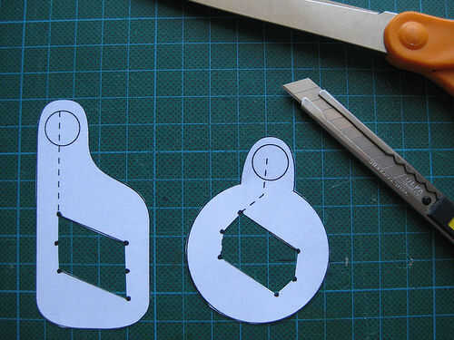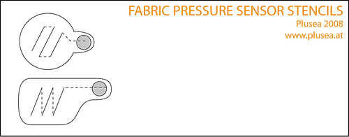 Decidir en forma para el sensor de presión. Considere que usted tendrá que crear dos etiquetas separadas para las dos capas de tejido conductivo y que estos no deben tocar entre sí (ver fotos). Esbozar la forma de su sensor en algún papel o de cartón, incluyendo ambas lengüetas. También tienes que planear donde hacer tus puntadas de hilo conductor en el centro o la zona sensible de su sensor de presión. Una puntada es el mínimo y las puntadas más cuanto más sensible el sensor va a ser, en el sentido que alcanzará la resistencia por lo menos con mucha menos presión. Así que mejor hacerlo como pocos uniformemente las puntadas necesarias para cubrir el área que desea cubrir.