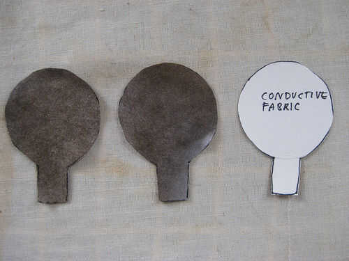 Tejido conductor: crear una versión más pequeña de 10mm de la tela de forma que sólo incluye una de las pestañas. Si su forma no es simétrica, que tendrás que crear dos plantillas para esta parte.