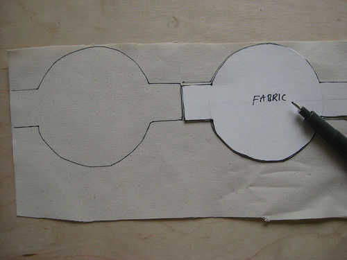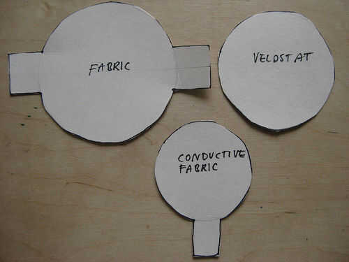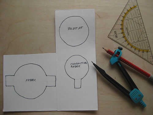 Tela: Esbozo de la forma para tu sensor en algún papel o de cartón, incluyendo ambas lengüetas.