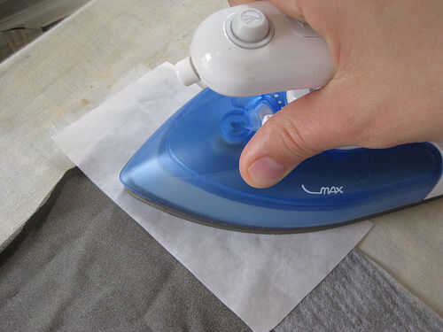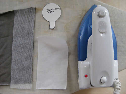 Si está trabajando con tela elástica y así estirar la tela conductora o cualquier otro tipo de tela conductora que hace no ya vienen con fusible conectado, tienes que fusible (hierro-en) algunas interfaces que antes de que se traza ad recortar las formas.