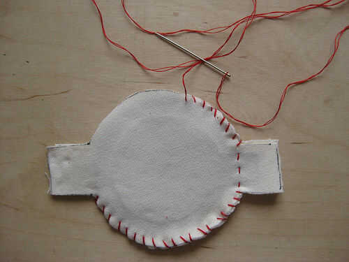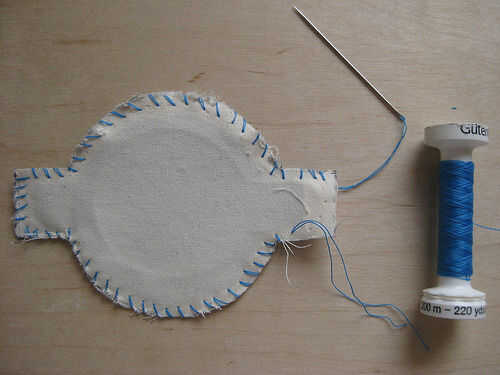Enhebrar una aguja con hilo normal y puntada alrededor de los bordes. O si tienes una máquina de coser, también puede utilizar esto.