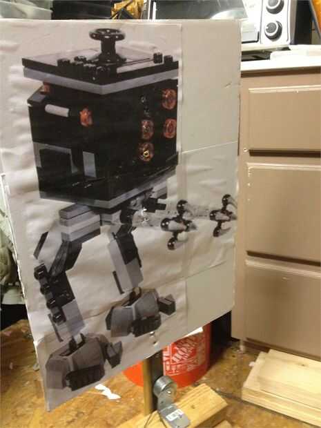 El badguy principal en la película de Lego se llama Señor negocio. Sus secuaces son robots de Lego llamados Micro empresarios. Imprimí una imagen grande 18 X 24 pulgadas y clued a alguna pizarra de 1/8 de pulgada. Luego une al cuello de la estructura. Y ahora la estación de obstáculo es completa o pensé.