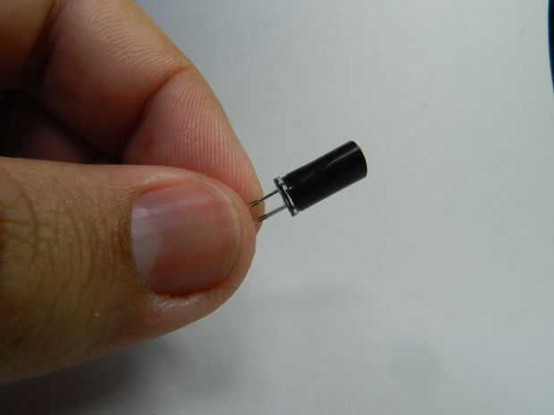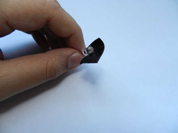 Corte un pequeño trozo de cinta aislante y envuélvalo alrededor del receptor del IR LED, formando un tubo. Cortar el borde con un par de tijeras hasta que quede aproximadamente 1cm de largo.