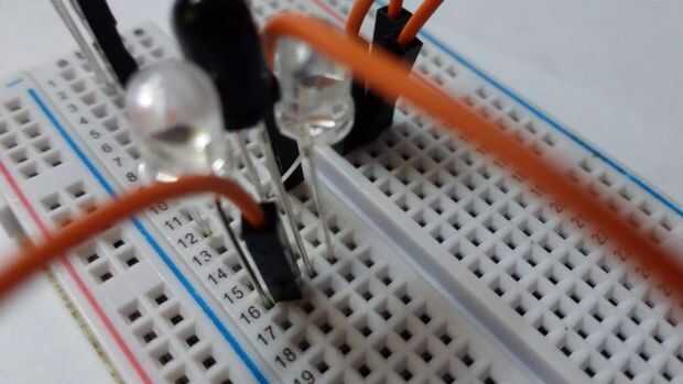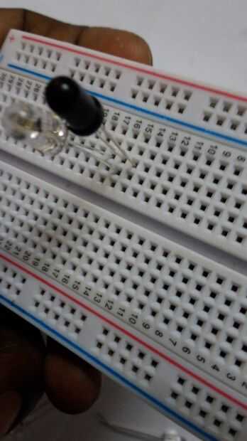 Conecte la resistencia del pin 5V al pin de ánodo del receptor IR LED. Todos los pernos de los ánodos de los emisores IR LED al pin digital 2. Un cable va desde el pin analógico 0 al pin del ánodo del receptor del IR LED. No olvides conectar todos los pines de cátodo de los LEDs con el conector de tierra. El zumbador es opcional, pero si la usas conectan el pin digital 11 y la tierra. La luz infrarroja no es visible a ojo desnudo, pero se puede ver a través de una cámara digital, ayuda a ver si el LED está funcionando o no. Echa un vistazo a las fotos.