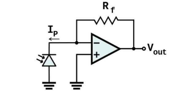 El punto de referencia para mi controlador es una salida de mi señal medido. La señal se mide por un fotodiodo, que es desde un punto de vista eléctrico una fuente de corriente. La tensión se convierte a un voltaje por una fuente de voltaje por corriente - o amplificador de transimpedancia - que también debe ser conocida. La tensión de salida se define por la resistencia de veces la corriente de entrada.